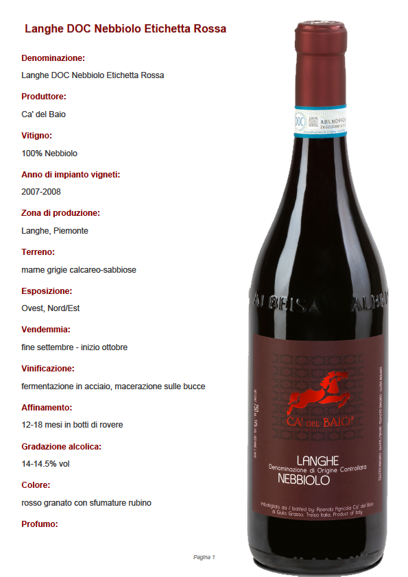 Nebbiolo Etichetta Rossa DOC CA' del BAIO                                                                                    € 25,00