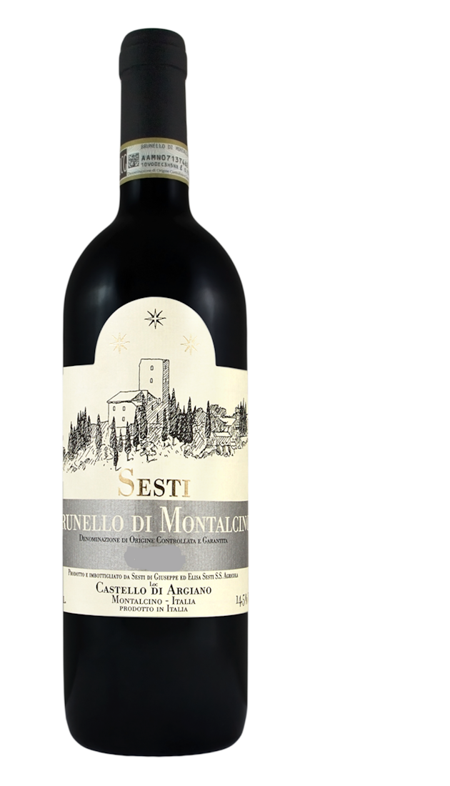 Il Brunello di Montalcino della cantina Sesti, prodotto nel suggestivo Castello di Argiano, rappresenta una delle interpretazioni più eleganti e raffinate del Sangiovese Grosso. I vigneti, situati tra i 250 ei 350 metri sul versante sudnovest di Montalcino, beneficiano di un microclima